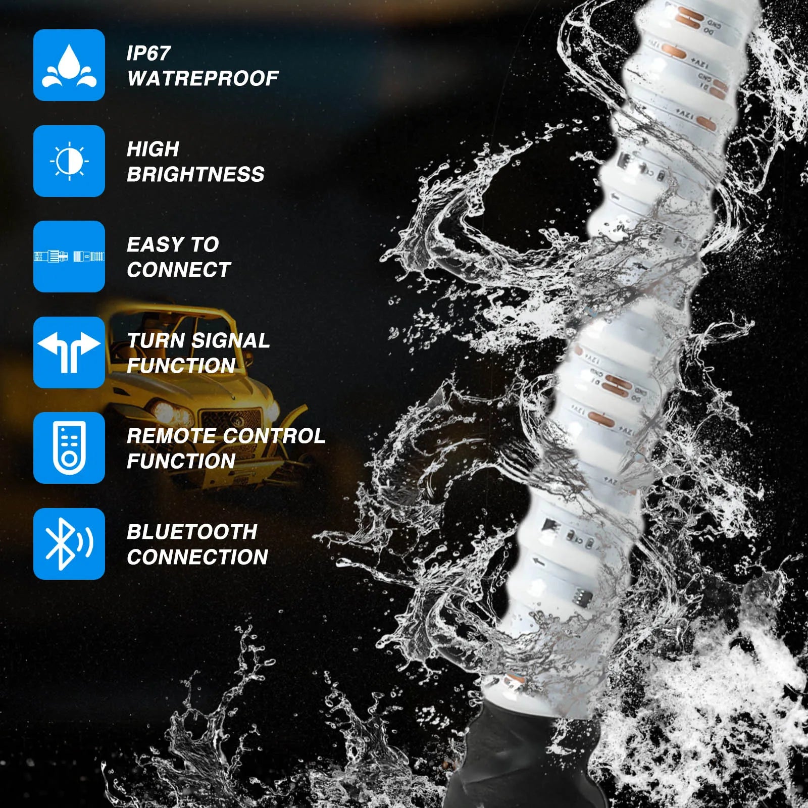- Package Included: 2 pcs 1ft LED Fat Whip Lights