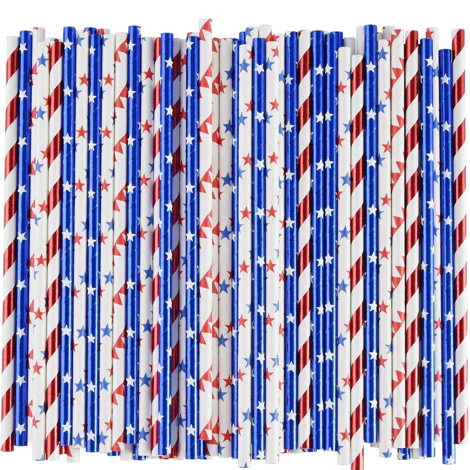 American Flag Paper Straws - Red, White & Blue for Patriotic Parties